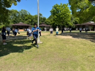 生徒だけと思いきや、教員も追われ、逃げ回り、疲れ、ヒモを取られる結末に。。みんな、元気に活動してます!