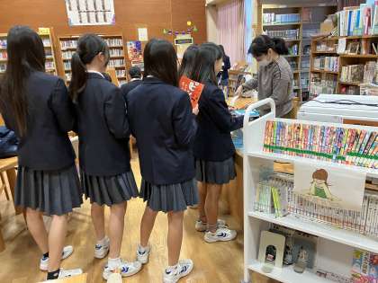 みんな本を借りてくれたので、カウンター前に列ができていました。
