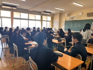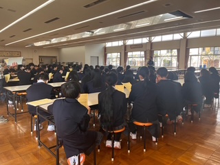 31期生(1年)は午前中に学年集会や、校舎案内、係決めなどオリエンテーションを行いました。お昼には中学生になって初めての給食を食堂で食べ、午後は身体計測、部活動紹介を行いました。