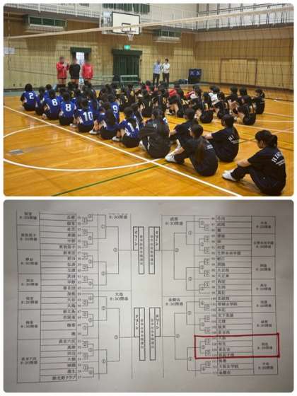 ウォーミングアップを終え、9時から開会式が行われました。9時半開始の第1試合が始まり、終了後に対東住吉中との第2試合が行われます。