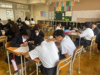 3回目となる今日は、「こんなときどうする?」ということで校外学習の活動中に、班のメンバーがはぐれたら?、道に迷ったら?、雷がなったら?などを想定し、その対応や対策を班で考えました。