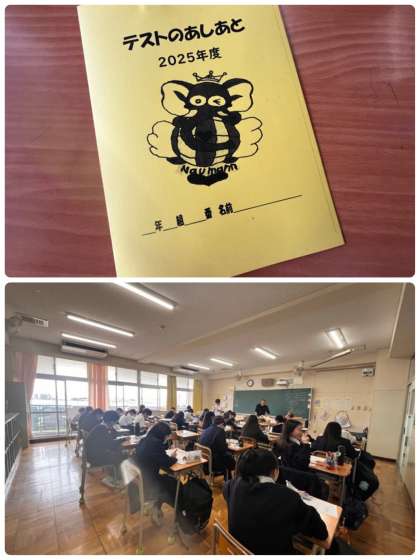 テストのあしあとの冊子は本日持ち帰ります。お家で保護者の方ともしっかり振り返り、1ヶ月後の期末テストに向けて、ぜひ活かしてほしいです。