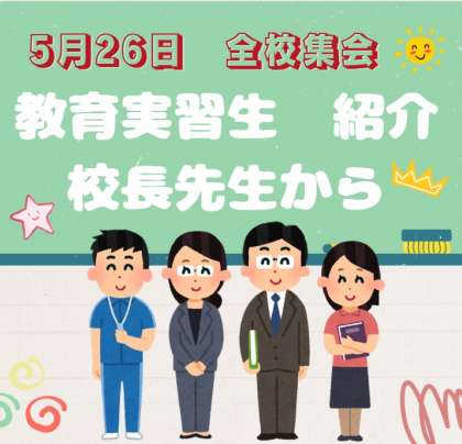 先日、小学校の運動会にて児童や卒業生に会ってきました。話題は、「中学校は楽しいか?休まず行けてるか?部活は入ったか?」。みなさんの小学校での先生方も心配と応援をしてくれてると思います。少しずつ成長していこう!
