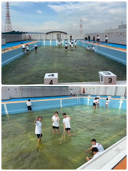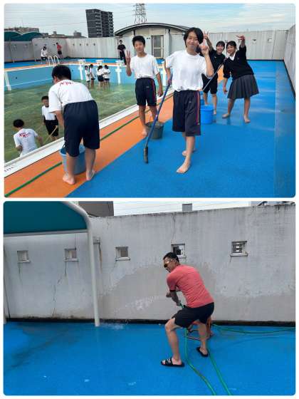 放課後に、体育委員、男女テニス部が学校プールの掃除に取り組んでくれました。大変な作業であるにも関わらず、一生懸命に、そして楽しそうにしてくれました!ほんとうにありがとう!