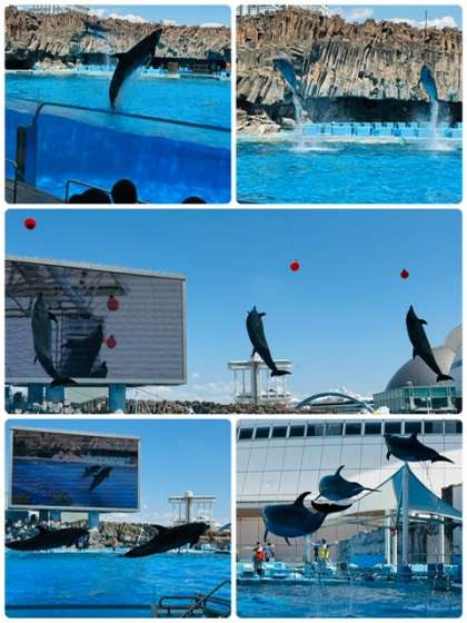 イルカのショーで楽しんでいます。