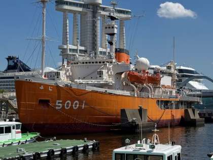 水族館内でもペンギンコーナーがありましたが、港には南境観測船「ふじ」が!