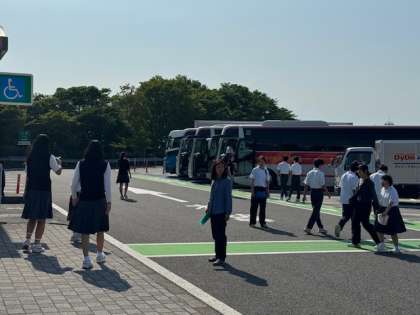 少しの遅れなんてドライバーさんのテクニックでアッというまに回復し、予定通りの17:00学校着で進んでいます。