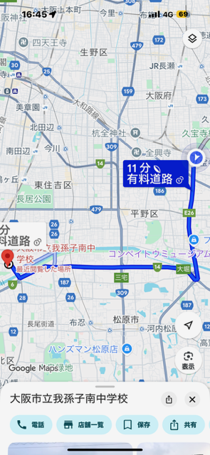 16:45現在 残り11分と予想されてます。(乗用車用) 松原ジャンクションの手前です。