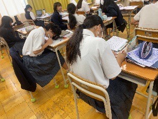 職場体験で経験をさせてもらったことを今後の活動に活かせるよう、2日間を振り返りながら一生懸命まとめています。