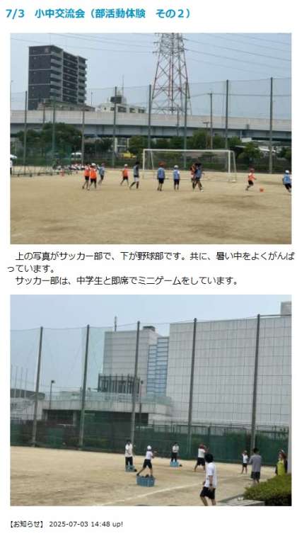 先日の小中交流会の様子は、校区小学校の学校ホームページでも掲載されています。