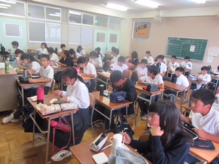 月曜日はは親子給食親校の依羅小学校が代休のため、教室で昼食をとりました。