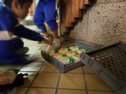 みんなでメロンパンを食べています!