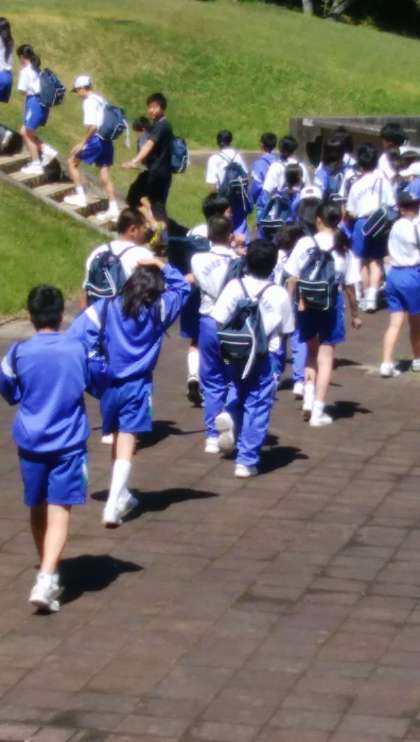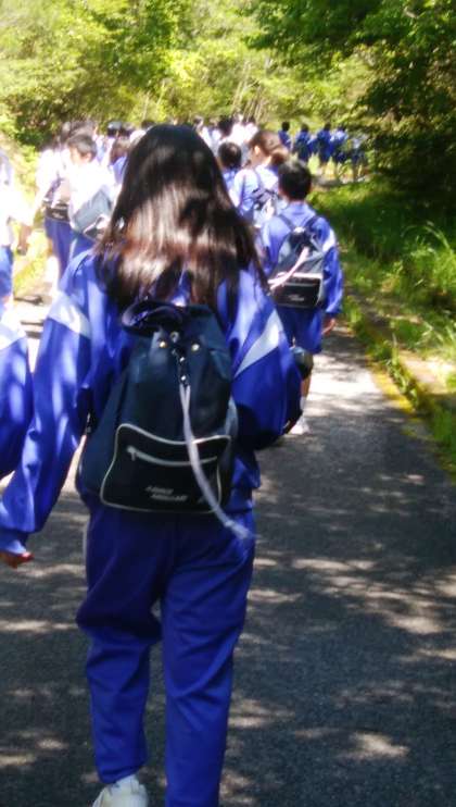 歩いて野外炊飯場に移動です。