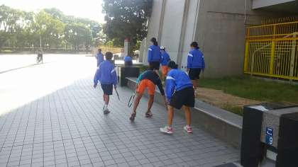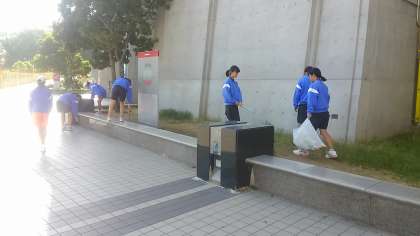 好天に恵まれた今日、大阪市長居庭球場において、大阪市春季総合体育大会ソフトテニス部本戦が行われました。開会式の前に、使わせていただく公園(グランド)に感謝するべく、グランド周辺のごみ拾いをしました。それを見てくださってた役員の先生が、開会式において、その様子をご披露いただき、お褒めの言葉までいただきました。