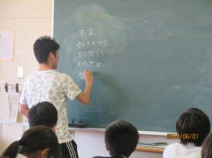 なんのために仕事をするのだろうか?という問いかけに、生徒たちこらはいろいろな意見が出ました。