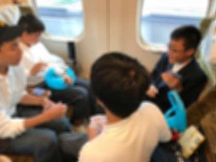 車内はお菓子を食べながら、トランプやお話に夢中です!