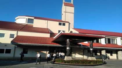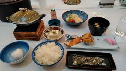 6時30分、バスに荷物を積み込んでから朝食でした。朝から豪華食事でした。