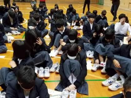 靴の着脱や、話している人の方向を向くなど、感覚を研ぎ澄まして体験しました。