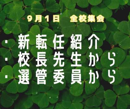 選挙管理委員長から新しい生徒会選挙が告示されました。もっと我孫子南中学校を盛り上げたいと思う人が生徒会に集まり、主体的に活動してほしいです。締め切りは12日です。