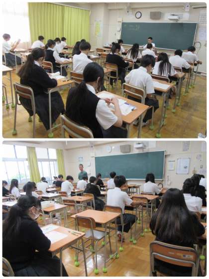 本調査は、グローバルな活躍に必要な4技能【聞く、読む、話す、書くこと】の向上を図ること、自身の英語力を把握するとともに学習指導の充実や改善、工夫を図ることを目的としています。また、本校は大阪市の英語教育推進モデル校として、今年度は2年生も対象としています。