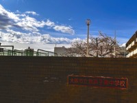 先週、年度末と新年度のご挨拶のため校区内を回っていたところ、中央公園のサクラが開花していました。