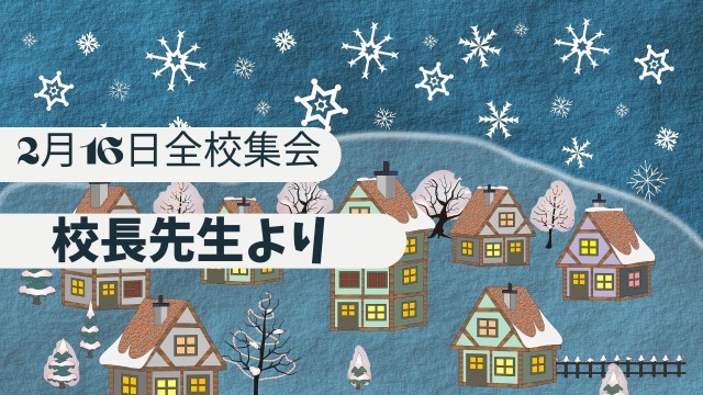 2月です。元気な挨拶でスタートしましょう。3年生は、私学受験まで約1週間となりました。明日からは、当日と同じ時間に起床し、朝食、朝の準備、家を出る時間など、ルーティンの確立が大事です。どうすれば心に余裕を持てるか?自身の能力を最大限に発揮できるか?に集中しましょう。