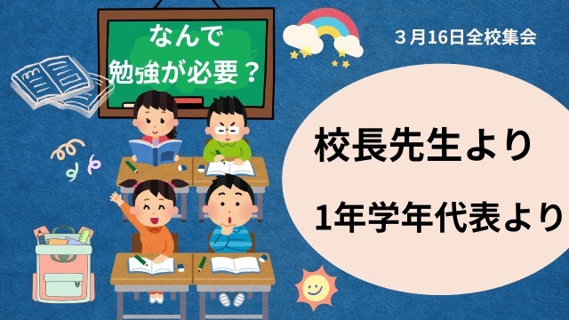 3月に入り、全校集会も残り3回となりました。今週も元気に挨拶しましょう。