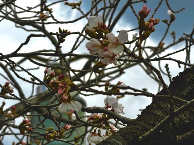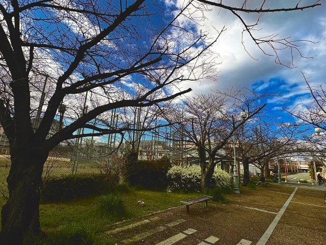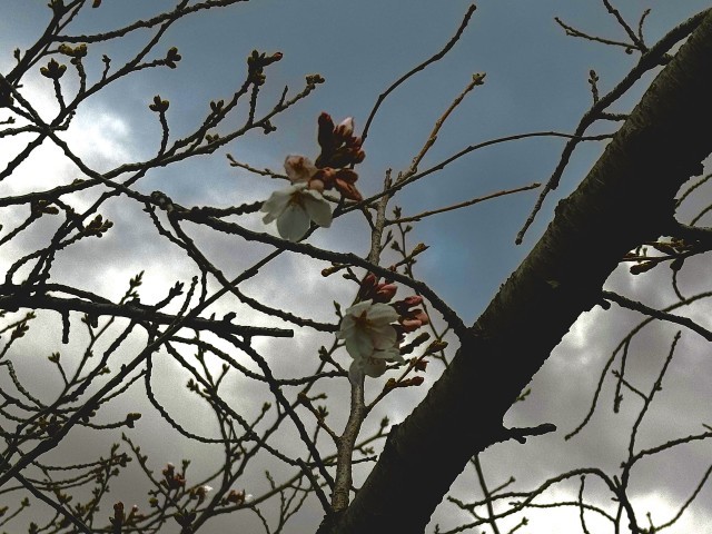 先週、年度末と新年度のご挨拶のため校区内を回っていたところ、中央公園のサクラが開花していました。