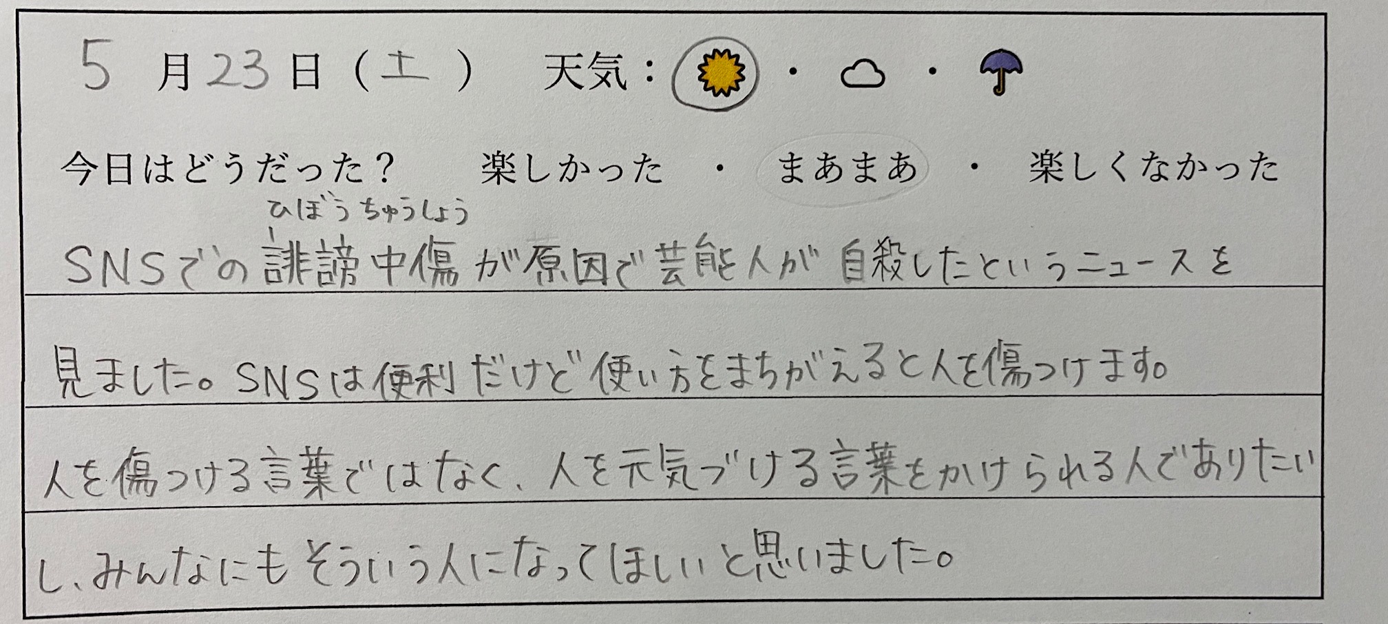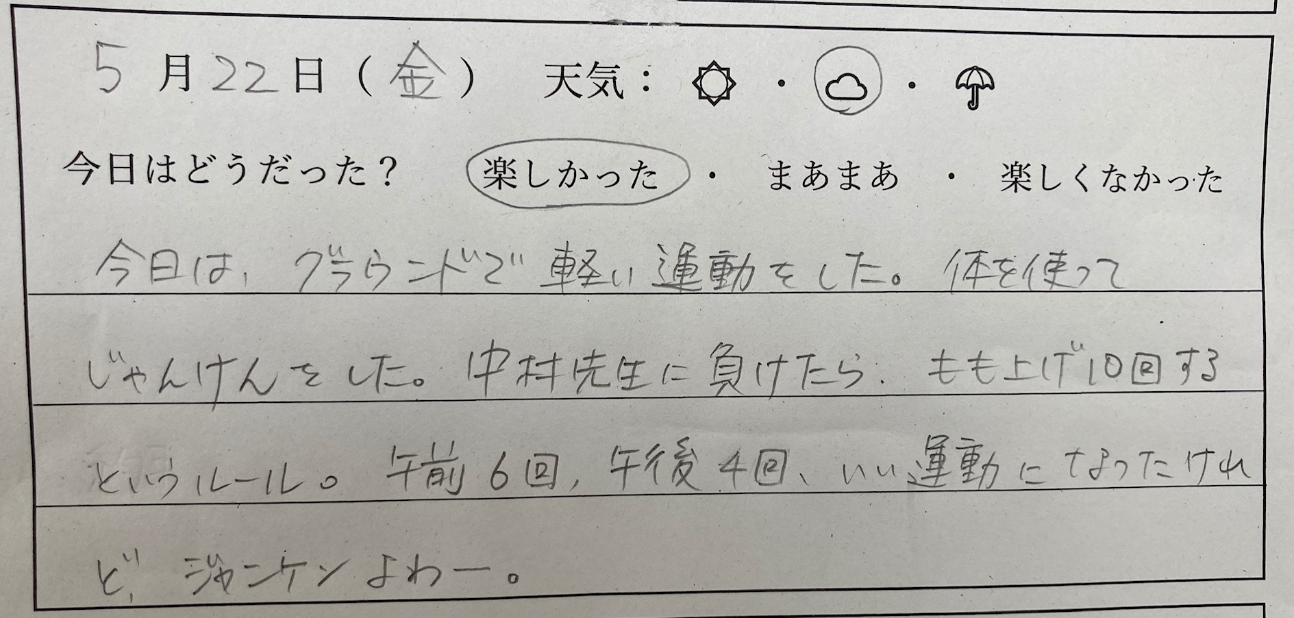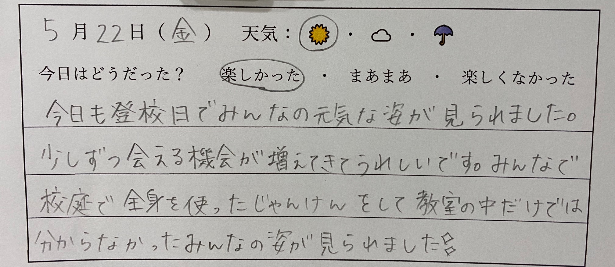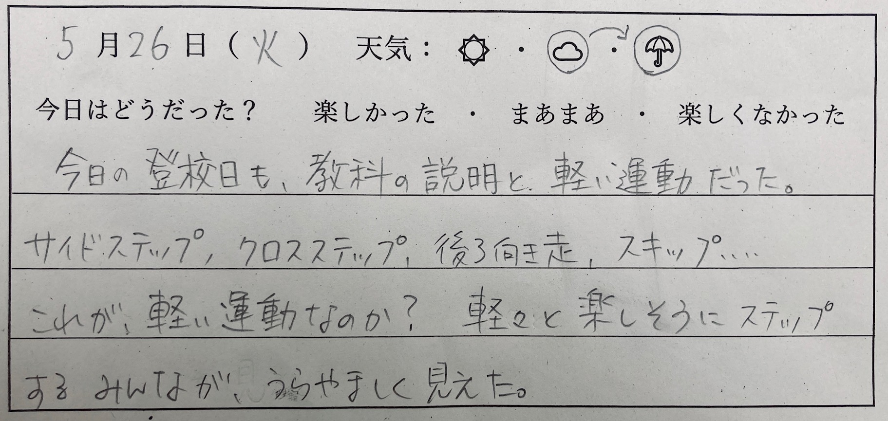 1年生国語科「日記を書こう」 17日目