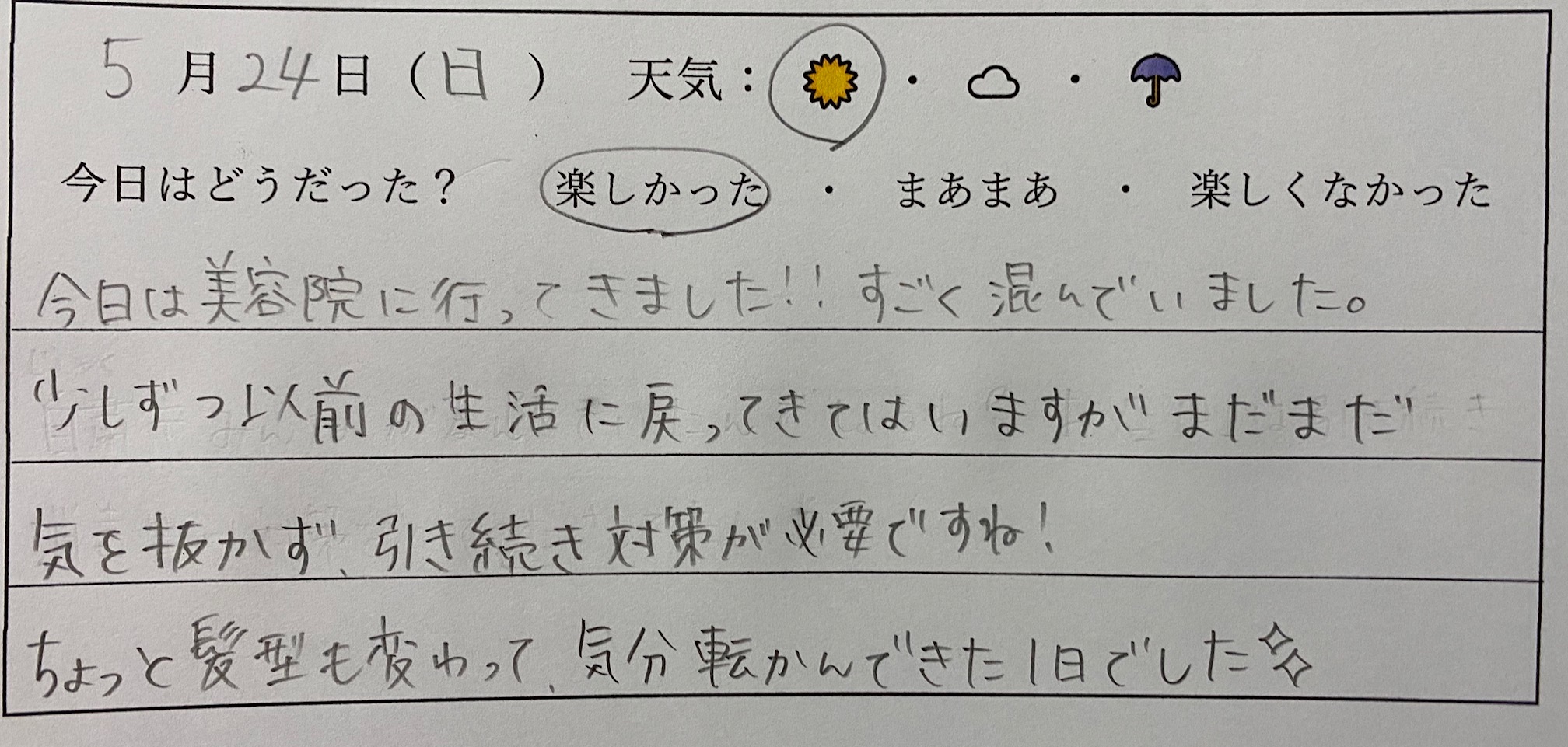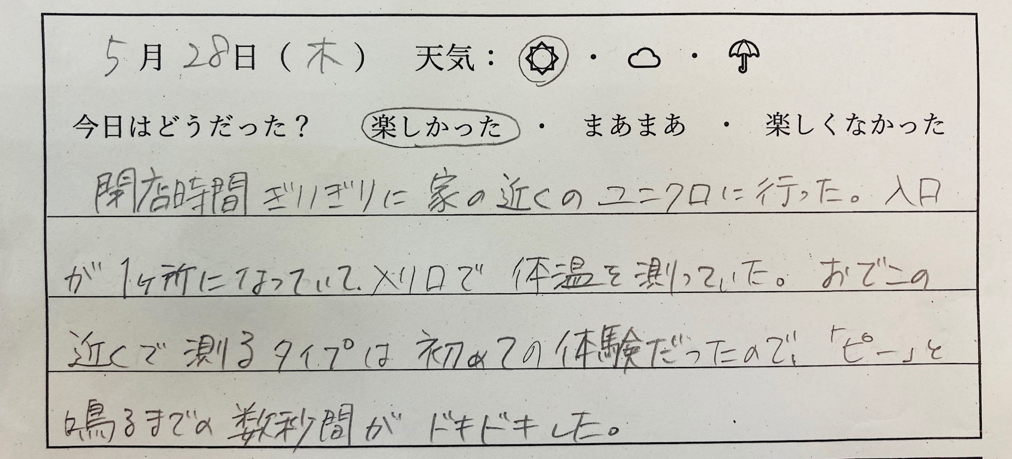 毎日の天気や行動を書く表みたいなものがあって