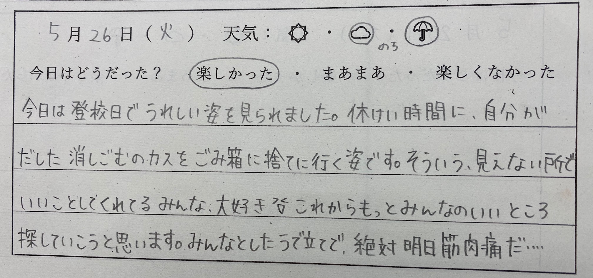 本並先生の日記 5月26日
