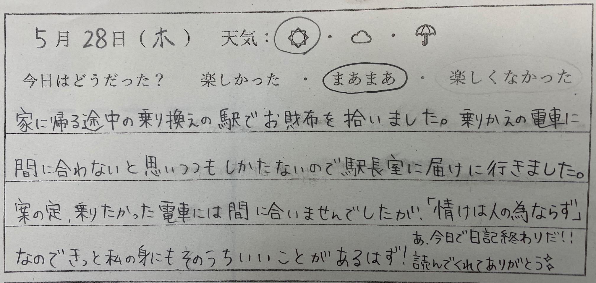 ずっと続けてきた日記も、今日の提出をもって
