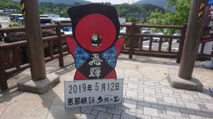2度目の休憩場所、恵那峡SAに着きました。天気もよく、バスも順調です。ただ、これから少し渋滞があるようです。
