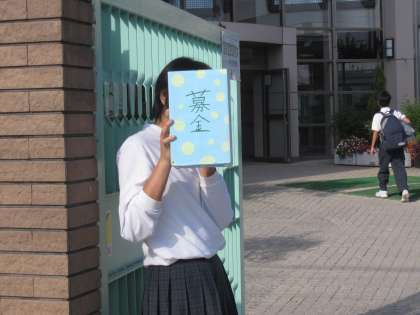 今週月曜日の全校集会で連絡がありましたが、広島の大雨による災害で被災された方に少しでも力になるため、生徒会で火曜から募金活動をしています。