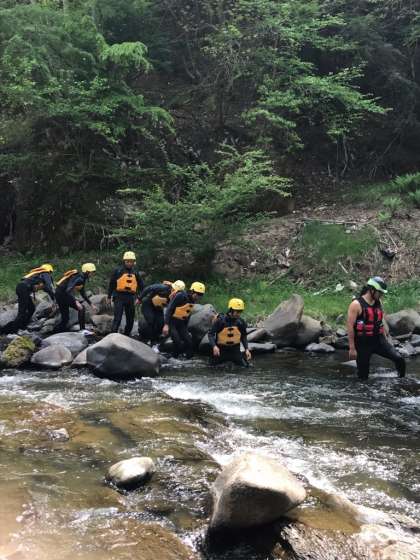 午後の体験、キャニオニングです。 川の中を歩いて川を下ります。