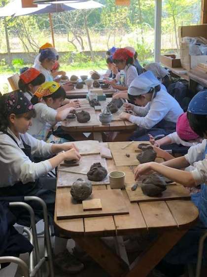 ろくろ体験もでき、みんな真剣な表情で取り組んでいます。