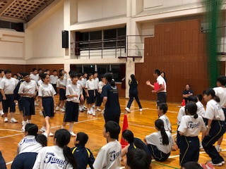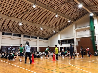 各担任の先生方のまえに、自分の担当以外のクラス生徒が並び、じゃんけんをしていき、生徒全員が先生に勝つまでの速さを競います。
