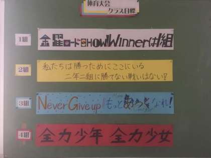 2年生ではクラスごとに体育大会のスローガンを考えました。