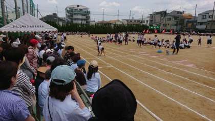 200m走はスタートもゴールも本部前です。ちょうどトラック一周です。