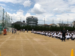 今回は、配膳室からの火災を想定しての訓練でした。消防署職員の方からは、「みんな静かに素早く行動出来ていた」と褒めていただきました。