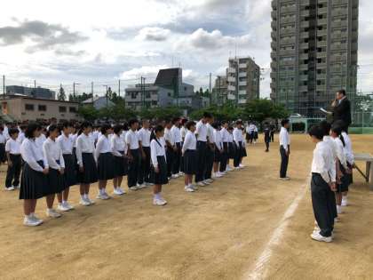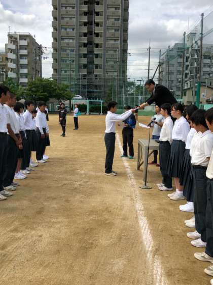 昨日の全校集会で、体育大会の各種目の1位の生徒の表彰を行いました。
