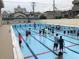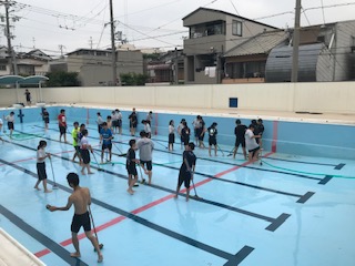 期末テスト3日目終了後、午後からラグビー部員と女子バレーボール部員の協力のもとプール清掃を行い、きれいになりました。ありがとうございました。