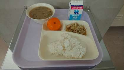 【ごはん 牛乳 ピリ辛野菜炒め オクラとん汁 冷凍みかん】