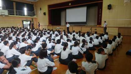 今日の5限は東住吉暑の方に来てもらい、生活指導の講話をしていただきました。テーマは【SNSの危険性】で、DVDを見たあと警察の方のお話をききました。みんな自分に関係してると思ったのか、真剣な顔で話をきいていました。