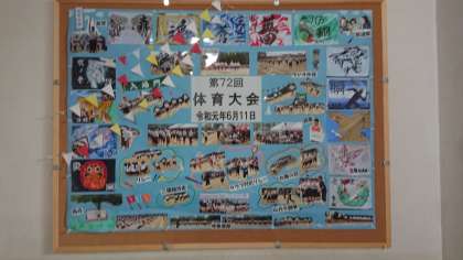 先ほどの朝顔をあとにし、2階へ向かうと学校元気アップさんが体育大会、修学旅行、一泊移住の写真を掲示してくれています。ふと足を止め見入ってしまいました。
