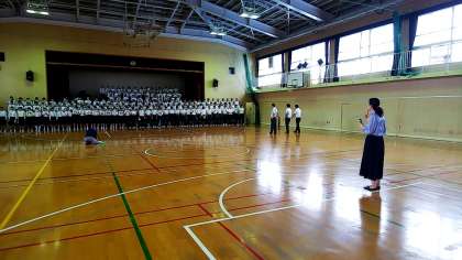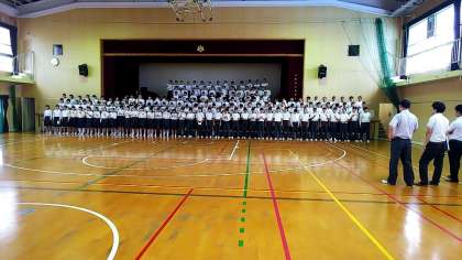 体育館で全体合唱の練習を行いました。突然の雷雨にも負けない声で一生懸命歌って練習する姿が見られました。これからどんどん上手になっていくのが楽しみです。