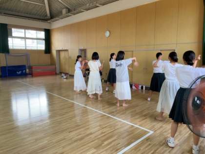 ダンスの練習と演劇で使用する小道具の作成の様子です。