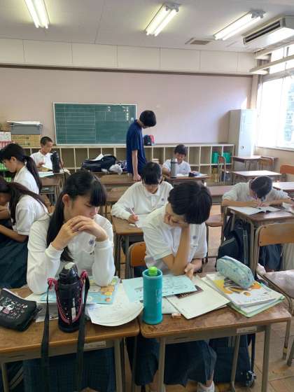 今日も元気アップさん主催の放課後学習会で勉強している人が約30人います。図書室が使えず2ヶ所の多目的室で学習しています。