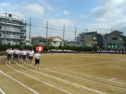 爽やかな秋空の下、第67回 体育大会を開催しました。今年は、初めての試みとして各クラスの行進に対して『行進賞』を授与することにしました。競技だけでなく、クラスでまとまる行進や係りの仕事を精いっぱい、一生懸命に取組む一日になりました。学校の池の横の石碑には、『一致協力』という文字が刻まれています。仲間とともに力を合わせて遣り切っていく喜びや達成感も味わいました。