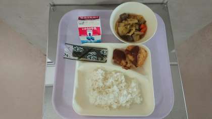 【ごはん 牛乳 みそカツ 馬鈴薯と野菜の煮物 焼き海苔】